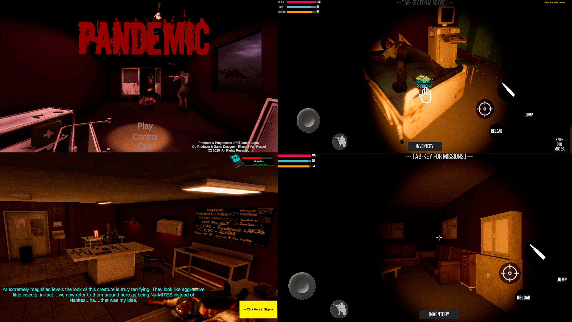Communication attempts to Facility Site 42 have been unsuccessful, the last report was 12 days ago on 2030/4/30. Facility Site 42 is assigned to research and development of a vaccine to the deadly virus and had reported to have been 90% complete eversince the last report. Research from Facility Site 42 has suggested that COVID-19, a SARS like virus, had seemingly evolved into a virus that infects the human body which then kills it after 1 hour of being exposed to it. It is not known how the virus had evolved into the virus it is now but a theory suggests that a third party might have tinkered with the virus and released it. The killed infected human is then revived and turned into a mindless being that is fueled by hunger of human flesh, in other words a “zombie”. The vaccine is yet to have been tested on a live subject, however, when the contents of the vaccine contacts the virus, it is said to have killed 98% of it. Further research is needed to make it so that it kills 100% of the virus and is estimated to be at least 2 days more until completion of the vaccine. Nevertheless, it has been 12 days since the last report which might mean the worst has happened to the site. Plans to send troops to the site were approved and had immediately begun. Troops are to eliminate survivors that are not of class A+. Troops are to also extract the vaccine which might be 100% complete, in any case it is extremely vital of the extraction of the vaccine.